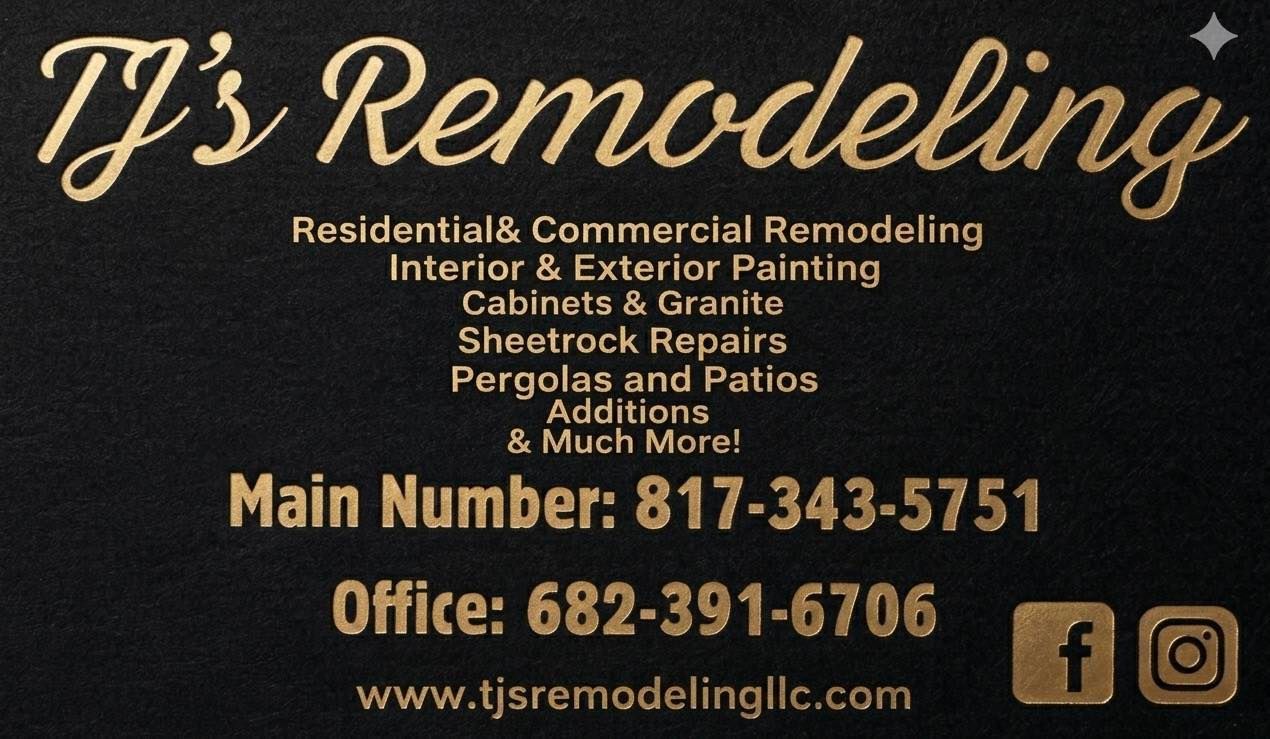TJ’s Remodeling helps homeowners across DFW with kitchens, bathrooms, additions, and full renovations with clear communication, quality workmanship, and dependable service.